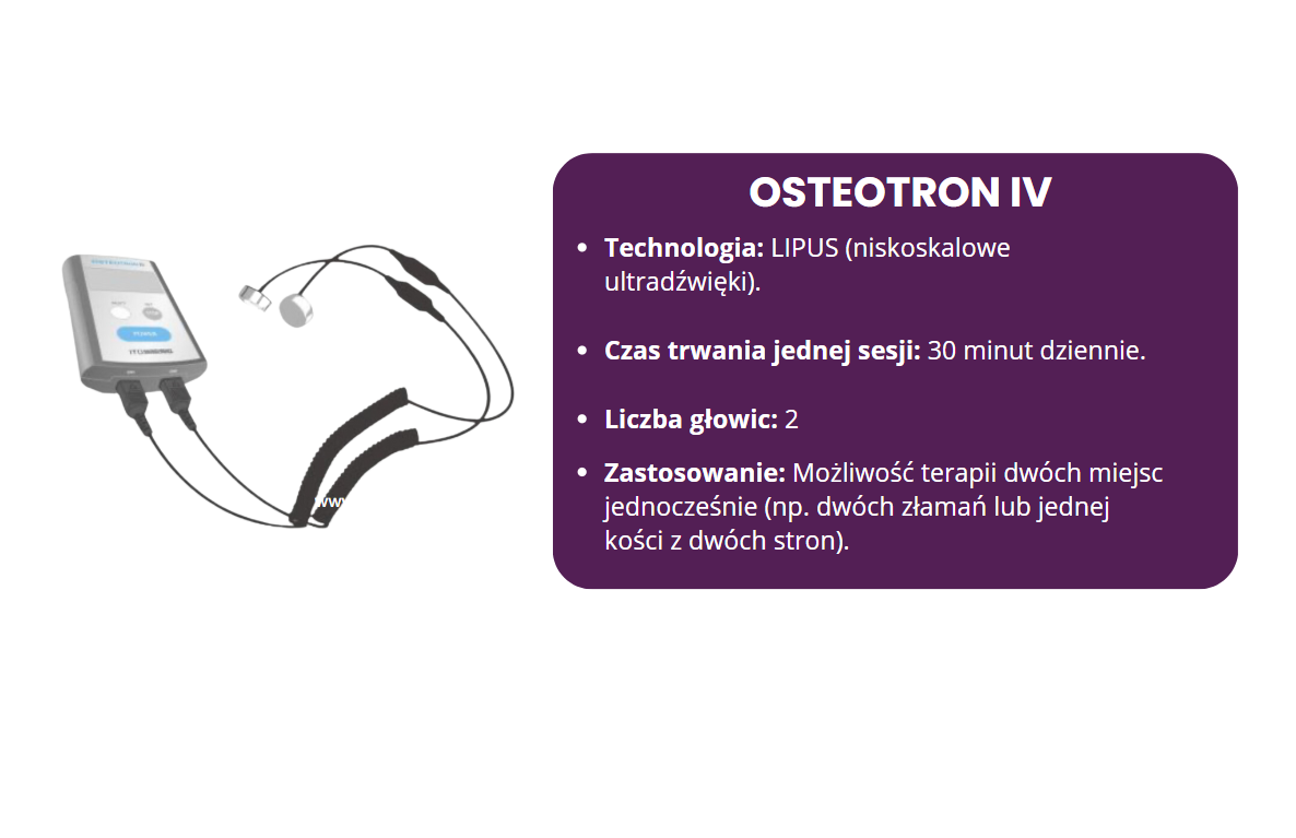 Osteotron – urządzenie pozwalające na terapię dwóch złamań jednocześnie lub jednego złamania z dwóch stron, dzięki zastosowaniu dwóch głowic. w połączeniu z odpowiednią opieką medyczną, czas rekonwalescencji może być znacznie krótszy. Dzięki dostępnej większej mocy terapii (60 mW/cm²) doskonale sprawdza się w leczeniu złamań dużych, głęboko położonych kości, takich jak kość udowa, ramienna czy miednica.